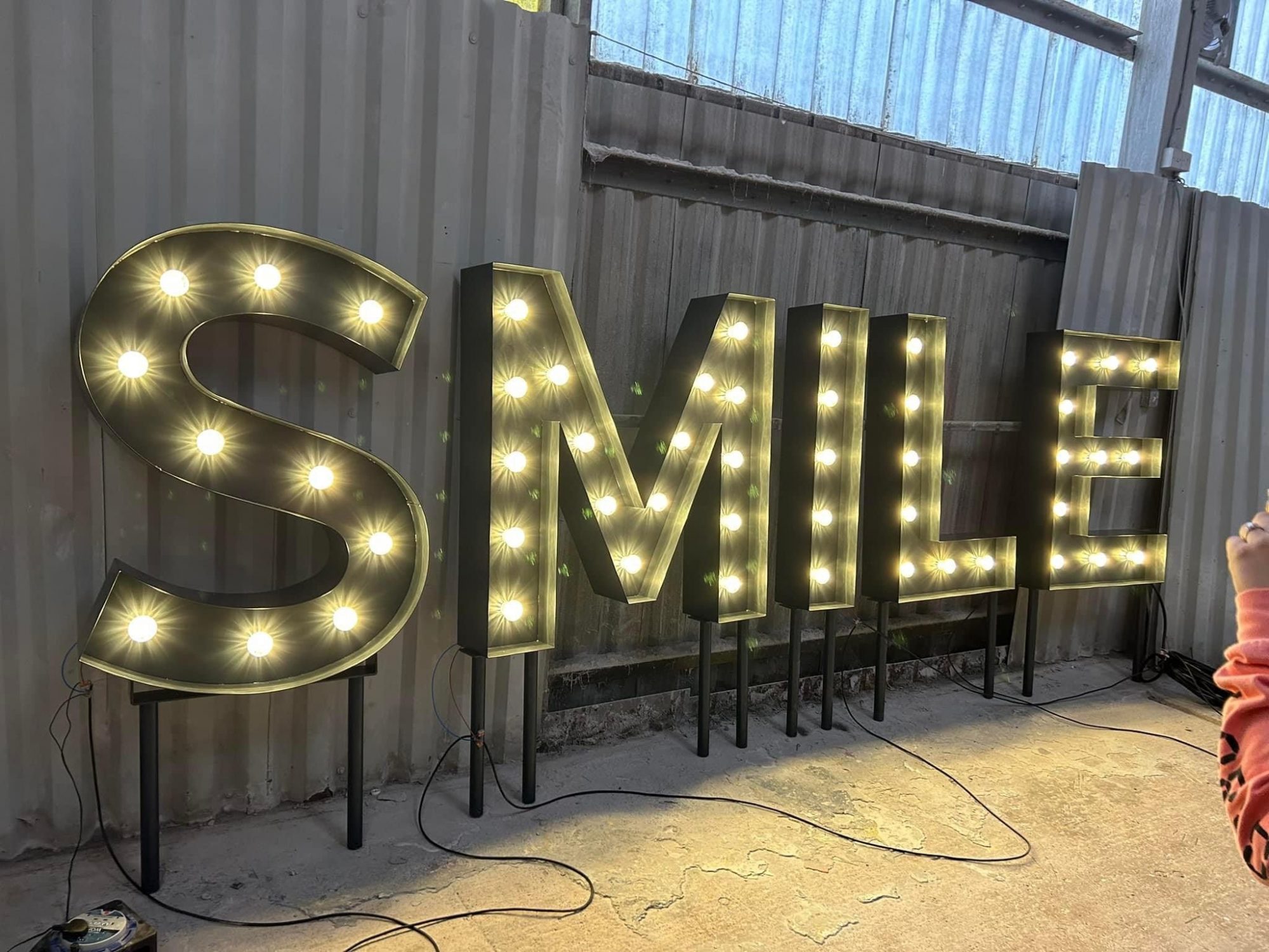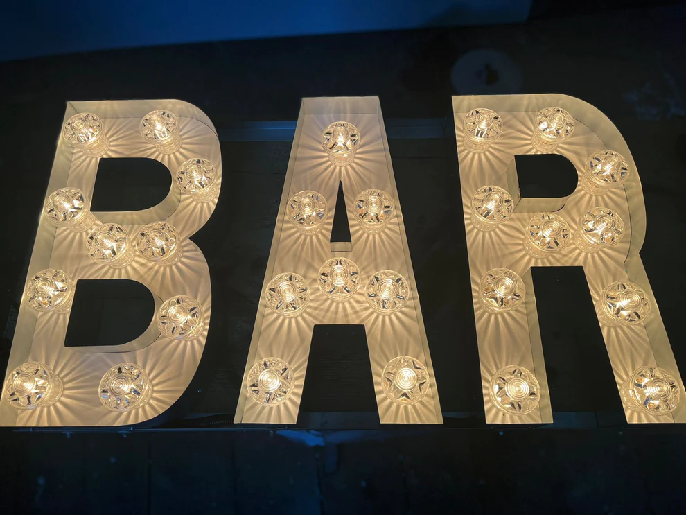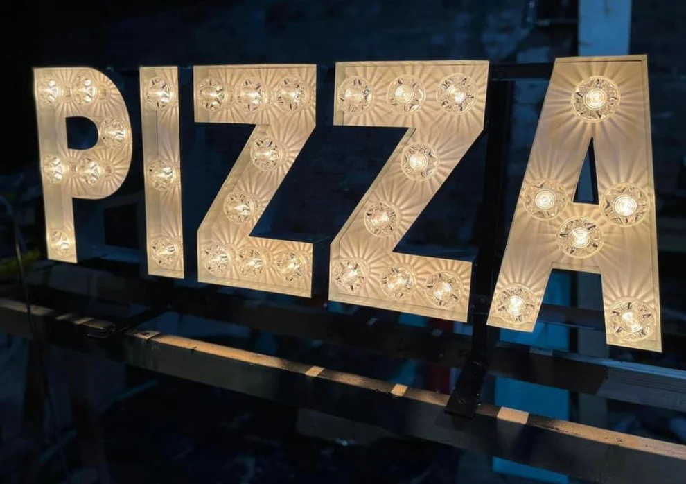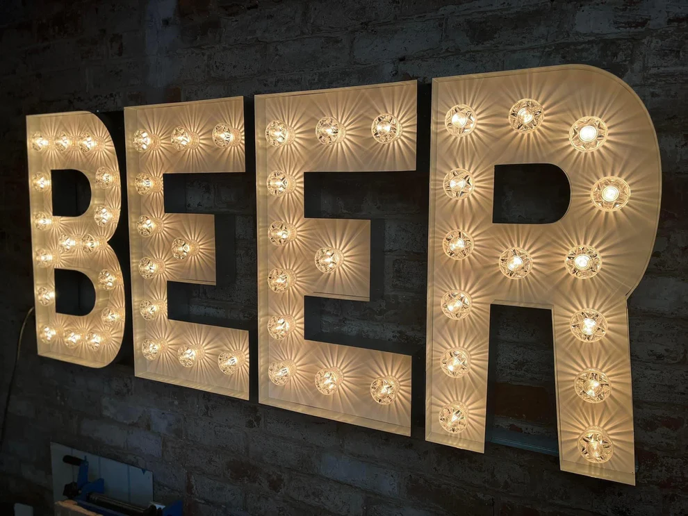 This signage style gives a real wow factor. The light scatters through the cabochon glass to show off a twinkling effect, catching the eye from miles around, so you’ll be sure to stand out in the crowd.